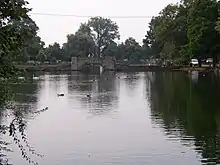 The park was once known as the "Old Bed" of the River, or the "Island", because the old Marietta and Cincinnati Railroad (now the Baltimore and Ohio) built an embankment to redirect the Scioto River, leaving a marshy river bed with an island left in the center where the river once flowed through the park. For twenty years afterwards Chillicotheans attributed the chills and fever and the shaking ague to the overgrowth in the park, and every epidemic of malaria was attributed to the area, considered a plague spot.