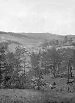Yogo Gulch lies in a region originally inhabited by the Piegan Blackfeet people.[11][12] Gold was first discovered at Yogo Creek in 1866, but the small numbers of early prospectors were driven off by local Native Americans.[13][44] During a Gold Rush in 1878, about a thousand miners came to Yogo Creek, which was one of the gold-bearing streams in Montana not yet actively mined. "Blue pebbles" were noted along with small quantities of gold. The mining camp at Yogo City only flourished for roughly three years,[13] and eventually the population dwindled to only a few people.[13]