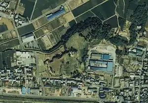 In February 1601, Ōsuga Tadamasa, lord of Kururi Domain in Kazusa Province, was allowed by Tokugawa Ieyasu to return to his ancestral estates in Tōtōmi, and was granted the status of a 55,000 koku daimyō. Ōsuga Tadamasa was the son of the Castellan of Yokosuka Castle and had been relocated by Toyotomi Hideyoshi along with Ieyasu to the Kantō region. During the unsettled period following Hideyoshi’s death, Ōsuga Tadamasa developed a reputation for his upright leadership, and was a strong supporter of Ieyasu. However, his son succeeded to Tatebayashi Domain (110,000 koku) in Kōzuke Province, and Yokosuka Domain reverted to tenryō status in December 1615.[2]