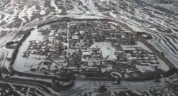 Yongtai Fortress is a village and historical fortress town in Sitan Township, Jingtai County, Baiyin City, Gansu, China.[1][2][3] Built in 1608 by the Ming dynasty rulers to defend against attacks from northern minorities, it stationed 2000 infantrymen and 500 cavalry units.[4] The entire fort is enclosed by a rammed earth wall including defensive towers. Due to desertification, the village is now mostly abandoned, dropping from 1500 people in the 1950s, to around 100 today.[5][6][7]