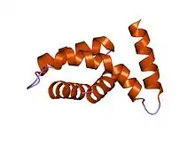 YopR, is composed of five alpha-helices, four of which are arranged in an antiparallel bundle.[1]