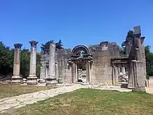 Shenberger was deeply interested in the design and artistry of ancient ruins. He was impressed with the frescos and carvings unearthed at the Dura-Europos synagogue. From his restorative work carried out at heritage sites all over Israel, including the Kfar Bar'am synagogue, he noted the ancient builders' usage of decorative elements and local materials, such as mosaics, and integrated some of these ideas into his own plans.[12] In 1956, he won a competition to renovate the tomb of Rabbi Shimon Bar Yochai in Meron.[16][17]