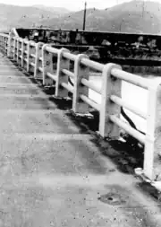 Matsushige was at home 2.7 km south of the hypocentre at the time of the explosion. He was not seriously injured, and determined to go to the city centre. A fire forced him back to Miyuki bridge, where the scene of desperate and dying people prevented him from using his camera for twenty minutes, when he took two frames at about 11:00. He tried again later that day but was too nauseated to take more than three more frames.[2] The first two frames are of people who escaped serious injury next to Miyuki bridge; the second of these is taken closer up and shows them having cooking oil applied to their burns. A third shows a policeman, his head bandaged, issuing certificates to civilians. The last pair are taken close to home: one of the damage to his family's barbershop, and another out of his window.[3]
