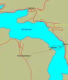Ytste Skotet is a complete, preserved, historical farm located in Fjord Municipality in Møre og Romsdal county, Norway. The historic farmyard and museum, which is part of the Sunnmøre Museum Foundation, is located on the steep shores of the Storfjorden in the Sunnmøre district of the county. The farm is located across the fjord from the village of Dyrkorn. The Storfjordens Venner association owns Ytste Skotet and has orchestrated the restoration of the farm. The foundation Ytste Skotet administers the farm's operation and maintenance, employs workers, and serves as general manager.[1][2]