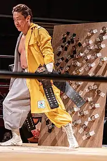Yuko Miyamoto was known as a troublemaker in his youth. He was a part of a motorcycle gang in high school and ultimately dropped out. He would become a steeplejack worker and this skillset certainly became of use when he transitioned to the death match style of pro-wrestling. His athletic background is in association football and snowboarding.