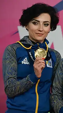 Yuliya Serhiïvna Korostylova (Ukrainian: Юлія Сергіївна Корoстильова; born 8 February 1984 in Lviv) is a Ukrainian sport shooter.[2] She represented her nation Ukraine in pistol shooting at the 2004 Summer Olympics, and trained throughout her sporting career for the shooting team at Lviv Sports Club Academy under her coaching parents Valentina and Serhiy Korostylov.[1] Coming from a sporting pedigree, Korostylova shares the same discipline with her younger brother Pavlo Korostylov, who later held the junior world record and won a gold medal in air pistol at the 2014 Summer Youth Olympics in Nanjing, China.[1][3][4]