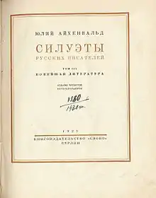 - In his best-known book Silhouettes of Russian Writers (1909) Aykhenvald offers a series of memorable impressionistic sketches of major Russian authors and their works. His argument that Ivan Turgenev was a second-rate writer caused an outcry in the conservative literary circles.