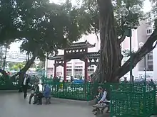 Yung Shue Tau (Chinese: 榕樹頭) is the public square in front of the Tin Hau Temple in Yau Ma Tei of Kowloon in Hong Kong. The name in Cantonese means banyan tree head, and many banyan trees are still there.[1] Yung Shue Tau is known natively but seldom written on the maps. The temple and square are deemed as the heart of the Yau Ma Tei and the remnant of fishing traditions.