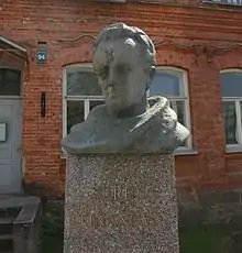 Bust of Tynyanov near his childhood home in Rēzekne, Latvia, 2016
