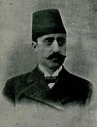 He married six times and had four children.[37] His first wife was Çeşmiahu Hanım.[38] She was born between 1854 and 1856.[39] She was a Circassian from the Ubykh tribe.[38] Her mother was Mestare Hanım.[40][41] They married in 1879. Four years later she gave birth to Şehzade Mehmed Bahaeddin in 1883.[42] She died of paralysis in November 1912,[39] and was buried in the mausoleum of Pertevniyal Sultan.[38]