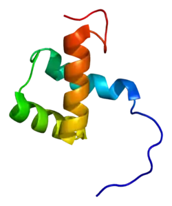 ZEB1 (previously known as TCF8) encodes a zinc finger and homeodomain transcription factor that represses T-lymphocyte-specific IL2 gene expression by binding to a negative regulatory domain 100 nucleotides 5-prime of the IL2 transcription start site.[7][6] ZEB1 and its mammalian paralog ZEB2 belongs to the Zeb family within the ZF (zinc finger) class of homeodomain transcription factors. ZEB1 protein has 7 zinc fingers and 1 homeodomain.[8] The structure of the homeodomain is shown on the right.