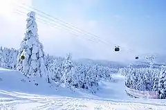The Zaō Ropeway (蔵王ロープウェイ, Zaō Rōpuwei) is the name of Japanese aerial lift system, as well as its operator. The route, consisting of two lines, climbs Mount Zaō at Zaō Onsen, Yamagata, Yamagata. The lines transport skiers of Yamagata Zao Onsen Ski Resort and rime spectators in winter, tourists and mountain climbers in summer.
