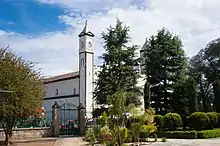 The city centers on its main square, which like many others in Mexico has a kiosk which hosts live music on Sundays.[2] However, it most famous feature is its flower clock, made by the workshops of León Olvera, founder of the Centenario Clock company.[5] This clock has two faces, each of which is five meters in diameters.[6] It is unique in that it is the only double faced flower clock whose hands are moved by a single mechanism.[7]