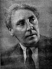 He was born in Sânpetru, Brassó County, in what was then the Transylvania region of Austria-Hungary. His parents were Zaharie Bârsan, a small landowner, and his wife Maria (née Vlădăreanu). After completing a gymnasium in his native city in 1895, Bârsan went to the Romanian Old Kingdom.[1] Settling in its capital Bucharest, he earned a degree from Gheorghe Lazăr High School.[2] He subsequently enrolled in the Dramatic Arts Conservatory, studying under Constantin Nottara and graduating in 1901. An employee of the National Theatre Bucharest from that point, he also participated in numerous traveling shows; between 1903 and 1913, he was a central figure of theatrical life in Transylvania. Following the province's 1918 union with Romania, Bârsan became the first director of the Romanian-language Cluj National Theatre, serving from 1919 to 1927, from 1931 to 1933 and finally from 1934 to 1936. Using a romantic, incantatory style, he performed tragic roles that included Oedipus, Prince Hamlet, King Lear, Macbeth, Karl Moor, and Ruy Blas.[1]