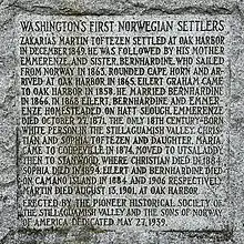 - 1 2 3 4 5 Toftezen Memorial — Washington's First Norwegian Settlers (Memorial). Stanwood, Washington: Pioneer Historical Society of the Stillaguamish Valley, Sons of Norway. May 27, 1939. Retrieved April 18, 2023.