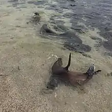 Galápagos sea lion displaying "jug handle" behavior to reduce heat loss.[12]