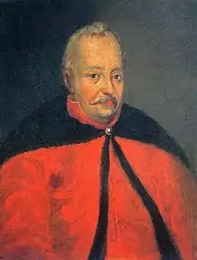 The Zamoyski Academy was designed to educate szlachta (noble) youth in Humanist culture and prepare them for work in the public interest—though, from its early years, most of the students were burghers, not nobles.[3][4] It was founded in 1594 by Crown Chancellor Jan Zamoyski in Zamość (a city, also founded by Zamoyski) with the assistance of poet Szymon Szymonowic, aka Simon Simonides (who would be one of the Academy's lecturers).[1][5] Its founding was approved in Rome by Pope Clement VIII (bull of October 29, 1594),[3][4] and in Poland by the Bishop of Chełm, Stanisław Gomoliński.[6] The official opening ceremony took place on 15 March 1595.[4] On July 5, 1600, Zamoyski would write, in the Academy's foundation act: "such are countries, as is the education of their youth" ("takie są rzeczypospolite, jakie ich młodzieży chowanie").[2][3][5] In 1601 the King of Poland, Sigismund III Vasa, confirmed the act.[3]