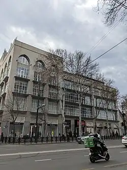 The Zarya Vostoka building is an office building in Tbilisi on Rustaveli Avenue. It was built in 1931 by the Armenian architect David Chisliev as the headquarters for the Russian-language newspaper Zarya Vostoka in the constructivist style. At the same location was until 1913 a wooden circus building owned by the Nikitin brothers.[1] The building later housed the publishing house Merani and was until 2007 a protected monument of national importance. Currently renovations are under progress that according to some critics threaten the historical substance of the building.[2]