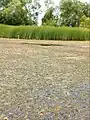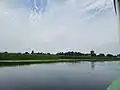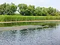 The Zasavica bog is a marshy lowland in the floodplain of the Sava River. It is a typical elongated oxbow (in Serbian: mrtvaja, dead [water]).[2] The fossilized, parallel bed of the Sava is so elongated that it actually stretches almost to the Drina river. In time, Zasavica river was formed from the subterranean waters from the Drina and from several streams, most notably, Duboka Jovača and Prekopac canal [3] (gravitationally, from the Cer mountain). The final section connecting Zasavica and Sava has been channeled (Bogaz canal). The river slowly meanders into and through the bog, widening from 50 metres (55 yd) to almost 300 metres (330 yd). The marsh, consisting of several connected bogs, covers an area of 11.5 square kilometres (4.4 sq mi). During normal water levels, the bog is 2.5 metres (8.2 ft) deep on average, but it can get up to 10 metres (33 ft) deep. The marshland's altitude varies from 76 to 82 meters (250 to 270 ft). The entire biotype includes also the Batar stream and several other canal-tributaries to Zasavica, and consists of an ecological row of water and marsh systems with fragments of flooded meadows and forests.[4] Through the Sava and Danube rivers, the Zasavica biotype belongs to the Black Sea drainage basin.