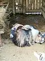 Mangulica is the only surviving autochthonous Serbian breed of domesticated pig. Other two, Šiška and Šumadinka died out. A breed, also known as "woolen pig", due to its good qualities, is considered a "noble", but it almost died out in the 1980s. Its fat has up to 80% less cholesterol and triglycerides than a common, white pig.[3] In 1998 Mangulica was introduced in Zasavica, but unlike Podolian cattle, they are left to roam free in the reservation, becoming feral since then. A cases of breeding with wild boar are known. By the early 2010s, their number grew to 1,000.[11]