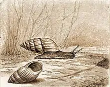 | An illustration showing both a live snail and a shell of Zebrina detrita | |