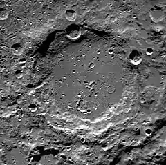 An unusual, (officially) unnamed massif is present in the northwest section of the rim, which rises about 4.0 km above adjacent parts of the rim and about 7.57 km above the crater floor.[1] The formation of the massif does not appear to be explainable simply on the basis of the impact that created the crater.[2]