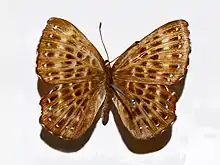 Females have the upper and undersides similar to those of the wet-season form, but the ground colour brighter and paler; markings also similar, but the black bordering to the white spots less prominent.[2]