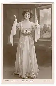 In 1902, at the age of 15, Dare was hired by Seymour Hicks to tour as Daisy Maitland in An English Daisy, and to play the title role in Cinderella in 1903–04 at the Shakespeare Theatre in Liverpool.[1] She spent much of 1904 touring but returned to London to play Aurora Brue in Sergeant Brue for Frank Curzon's theatre company.[1] She left the company to create the role of Angela on in September 1904 in The Catch of the Season at the Vaudeville Theatre opposite Hicks.[1] The role would have gone to Ellaline Terriss, Hicks' wife, but she was pregnant. Dare left Catch of the Season in 1905 to play Beauty in Sleeping Beauty in Bristol.[1] Terriss later assumed the role of Angela, and Dare's sister Phyllis took over the role from Terriss.[3]