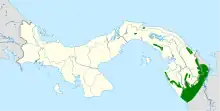 The nominate subspecies of russet-crowned quail-dove is resident from Panama's eastern Panamá Province through Darién Province into extreme northwestern Colombia. Z. g. oreas is found in eastern Panama but west of the nominate. It inhabits subtropical forest in foothills and lower highlands, generally at elevations between 750 and 1,600 m (2,460 and 5,250 ft) but as low as 90 m (300 ft) in Colombia.[4]