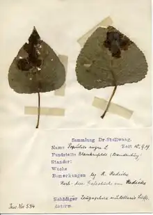 Zeugophora scutellaris, known generally as the poplar blackmine beetle or cottonwood leaf-mining beetle, is a species of megalopodid leaf beetle in the family Megalopodidae. It is found in Europe and Northern Asia (excluding China) and North America.[1][2][3]