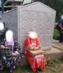 Historian Đorđe Stratimirović in the Gazette of the National Museum, XXXVIII from 1926, claimed that the stećak is a tombstone on the grave of Stjepan II Kotromanić who died in 1353. Stratimirović believed that the four human figures on the facade belong to ban Stjepan, his wife and daughter Elizabeth married to the Hungarian king Luis I, and ban's nephew and heir Tvrtko I.[7] He based his claim on two plaques with an inscription. Today the tiles are not in the museum.