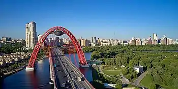 Zhivopisny Bridge (Russian: Живописный Мост, lit. Picturesque bridge) is a cable-stayed bridge that spans Moskva River in north-western Moscow, Russia. It is the first cable-stayed bridge in Moscow. It opened on 27 December 2007 as a part of Krasnopresnensky avenue. It is also the highest cable-stayed bridge in Europe.[1] The author of the project is the architect Nikolay Shumakov.[2]