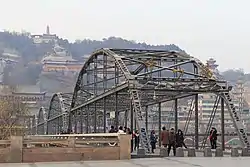 The Zhongshan Bridge (Chinese: 中山桥) is a steel truss bridge over the Yellow River in Lanzhou. Opened in 1909, it was the first permanent bridge over the Yellow River.[1] The bridge is one of the most well-known landmarks of Lanzhou. Construction of the bridge began in 1907 and the bridge was completed in 1909.