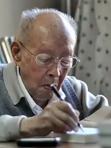 Zhou Youguang (Chinese: 周有光; pinyin: Zhōu Yǒuguāng; 13 January 1906 – 14 January 2017), also known as Chou Yu-kuang or Chou Yao-ping, was a Chinese economist, banker, linguist, sinologist, Esperantist,[1][2] publisher, and supercentenarian, adored as the "father of Pinyin",[3][4][5] a system for the writing of Mandarin Chinese in Roman script, or romanization, which was officially adopted by the government of the People's Republic of China in 1958, the International Organization for Standardization (ISO) in 1982, and the United Nations in 1986.[5][6]