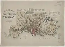 Löytved's map of Beirut shows the mansion which predates the 1876 document. The mansion was located at the western outskirts of the nascent Zokak-el-Blat district. Before the development of the neighborhood, the mansion's west and south facing arched galleries opened up on the dunes of Ramlat az-Zarif, which extended all the way to the Ras Beirut peninsula. To the North, the mansion's main facade opened towards the garden-clad Qantari neighborhood and to the Minet el-Hosn bay. The road skirting the western walled garden of the mansion was named after Beirut's sand hills, Tariq ar-Raml (meaning the sand road, later renamed Abdel-Kader street) follows the course of the flat valley rising from north to south. To the opposite of Tariq ar-Raml stood mulberry and citrus orchards interdispersed by small irregular buildings. The Zokak el-Blat gardens persisted from the start of the suburban expansion of Beirut until the early 20th century.[8]