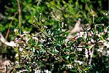 This zieria is similar to Z. aspalathoides but that species has fewer but larger flowers in each group and shorter, warty leaflets.[3]