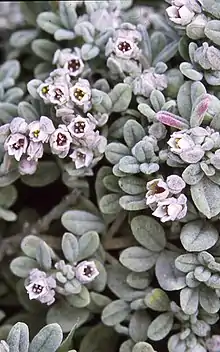 Zieria littoralis, commonly known as dwarf zieria[2] is a plant in the citrus family Rutaceae and is endemic to south-eastern Australia. It is an erect or spreading shrub with velvety, three-part, clover-like leaves and clusters of up to thirty white or pale pink flowers with four petals and four stamens. It grows on exposed, rocky coastal headlands.
