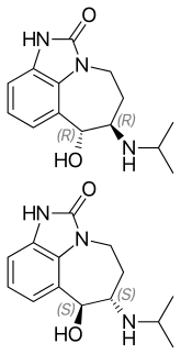 Zilpaterol has two chiral carbons and consequently four optical enantiomers. These enantiomers are: (6R,7R)-, (6R,7S)-, (6S,7R)- and (6S,7S)-. RU 42173 corresponds to racemic trans-zilpaterol hydrochloride, a mixture of the (6R,7R)-(−)- and (6S,7S)-(+)-enantiomers.[1]
