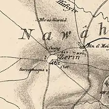 The Crusaders referred to it as "le Petit Gerin" or "the Little Jenin" to distinguish it from Jenin, which they called "le Grand Gerin".[3] In Latin literature of the time it was called "Gezrael", "Iezrael", "Parvum Gerinum" or "Zarain".[4]