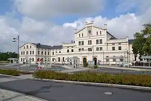 Zittau station (German: Bahnhof Zittau) is a railway station in Zittau, Germany. The station is located on the Liberec–Zittau, Zittau–Löbau and Zittau–Hagenwerder standard gauge lines as well as it is one terminus of narrow gauge Zittau–Kurort Oybin/Kurort Jonsdorf railway. Until 1945 narrow gauge Zittau–Hermsdorf railway to today's Bogatynia in Poland and Heřmanice in the Czech Republic also began at Zittau station.