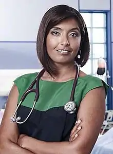 - ↑ "Sunetra Sarker makes a shock exit from Casualty". BT. 9 May 2016. Retrieved 14 May 2016.