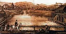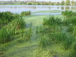 A dam across Zolota Lypa formed a large lake in the northern part of Berezhany, western Ukraine