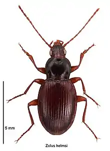 - 1 2 Larochelle, André; Larivière, Marie-Claude (2017-01-01). "Synopsis of the tribe Zolini in New Zealand (Coleoptera: Carabidae)". Insecta Mundi. 594: 1–110.
