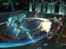 Zone of the Enders entered development for the PlayStation and PC, but in actuality Konami had no intentions of releasing them for those platforms.[16] Early prototypes of the game were built on Dreamcast.[17][18][19] The game's focus is on anime-style robots with an emphasis on realism compared to common sci-fi works. Development staff were advised by professionals who had done scientific research for other anime series. Director and scenario writer Noriaki Okamura wanted to write a serious story featuring people with complicated lives; its main theme examines the purpose and nature of life, as reflected in Leo's hardships during the game. To support this message, multiple endings for the main narrative were avoided, although side quests could feature different endings. Despite this, two other endings can be unlocked depending on the player's performance when protecting civilians. In contrast to other 3D games, the team worked to give players the sensation that they are controlling a fast robot; this demanded a year of camera work to achieve.[16]