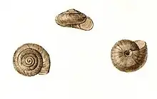 (Original description in Latin) The shell has a broad umbilicus. It is conoid-depressed and is striated. It is smooth with a pale greenish color. The shell contains 4½ convex whorls. The suture is deep enough. The body whorl is rounded, not bent anteriorly, excavated below, gradually reaching almost to the umbilicus. The aperture is slightly oblique, emarginate-subcircular, with removed edges. The columella is distinctly ascending. [2]