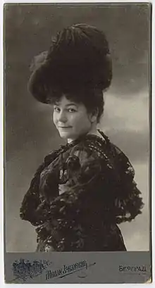 Zorka Kolarovic began performing in childhood with her parents.[1] She joined the National Theatre in Belgrade as a young woman, and was a star there for decades.[2] She was billed as "Zorka Todosić", originally by mistake, but she kept the simplification of her married name as her stage name. She was the first to play Borislav Stanković's Koštana when the play debuted in 1900,[3] and she played the role for the next six years. She was often cast in "soubrette" roles, especially in adaptations from Moliere.