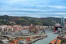 Two bridges link the resulting island to Deusto: Frank Gehry Bridge, inaugurated in 2015, and San Ignacio Bridge, finished in 2020.[2]