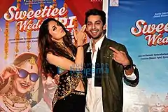 Zoya (left) with Himansh Kohli at a promotional event for Sweetiee Weds NRI in 2017.