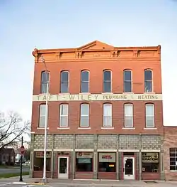The Zuhn Building is a historic building located in Mount Pleasant, Iowa, United States. Completed in 1886 a block east of the town square, this three story, brick, Italianate structure replaced a single story building that had housed the Mount Pleasant Carriage Works. H.A. Zuhn had that building torn down and this one built so he could expand his business.[2] He used this facility to manufacture and repair vehicles. The only decorative element of the building is the bracketed metal cornice with date and pediment caps across the top of the facade. The double storefront has been altered somewhat over the years. The building was listed on the National Register of Historic Places in 1991.[1]