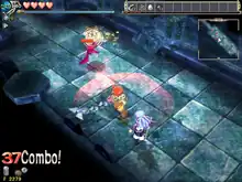 The game features a variety of villages, where players can converse with NPC characters in typical RPG fashion. Travel between locations occurs via Ilvard's overworld map. The majority of the game takes place in dungeons filled with traps and monsters. A dungeon is composed of a few stages, which are split into three floors each. Each stage contains many small puzzle elements, which need to be solved to earn rare treasures or to simply progress. There are many mini-bosses and a dungeon boss, with the dungeon bosses requiring specific strategies to defeat, such as waiting for their weak spot to open.[2]